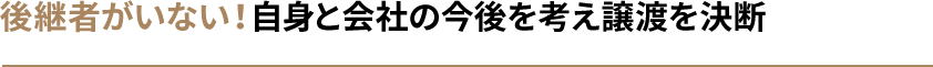 「いま私が倒れたら多くの人に迷惑をかけてしまう」と考え、半年以内の承継を希望しお相手を探していただきました。