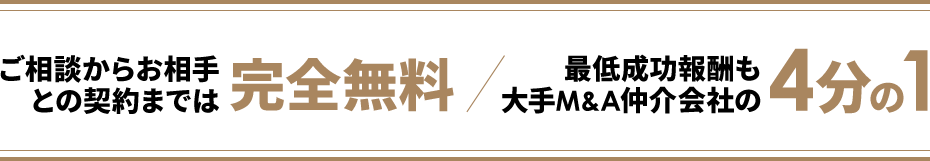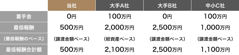 大手金融機関、大手M&A仲介会社の最低成功報酬は2,000万円程度であることに対し、