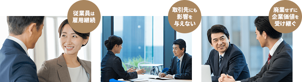 従業員の雇用契約の継続は大前提。従業員にも取引先にも影響を与えずに、取引を成立させます。